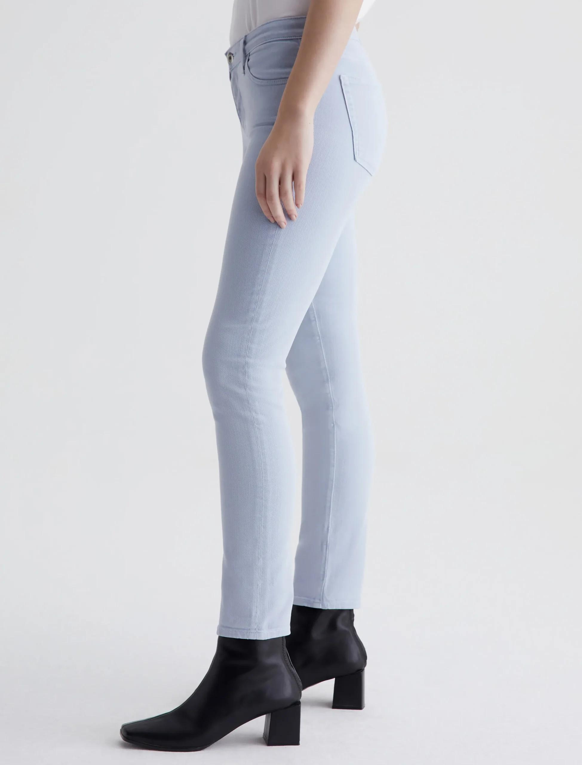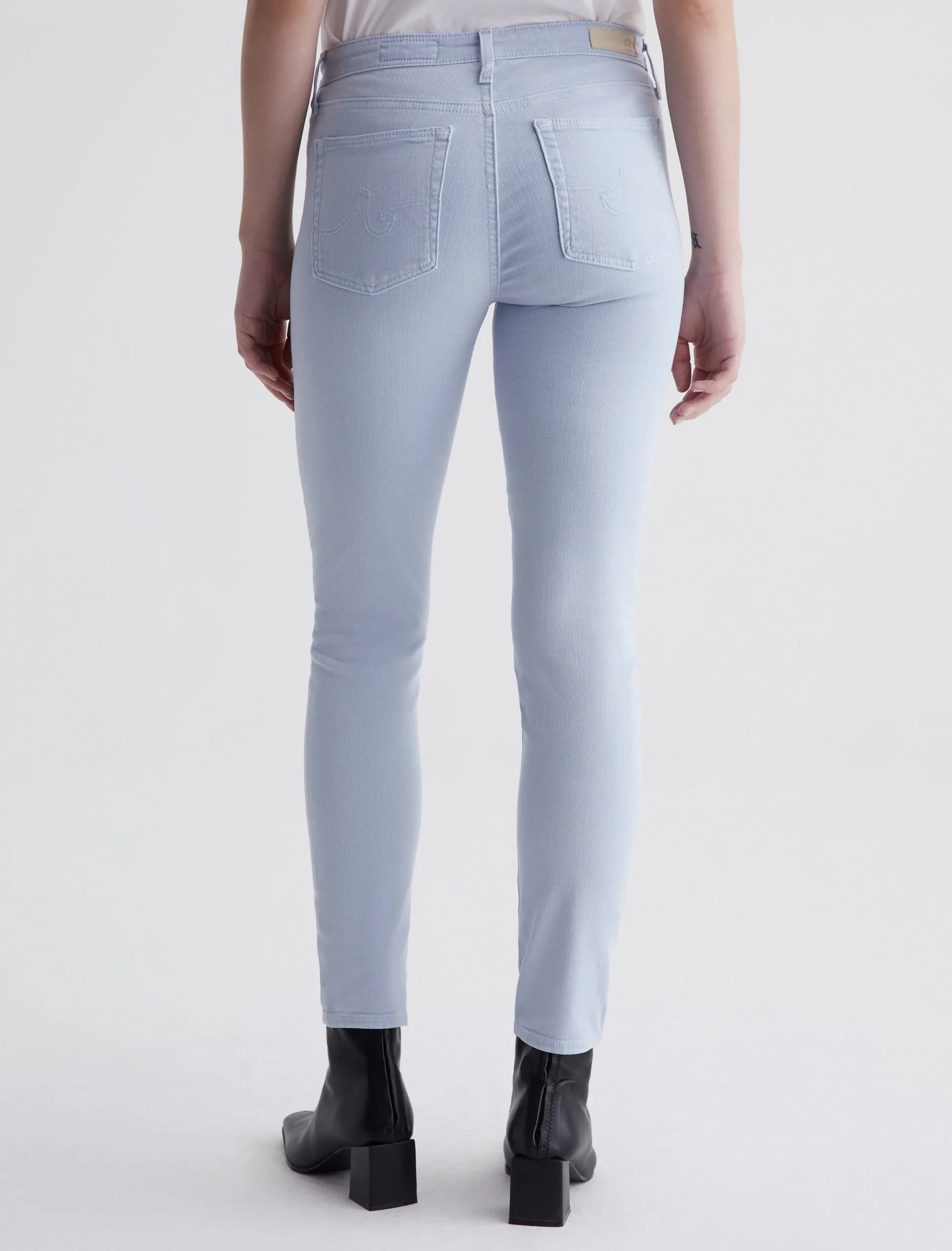 The Prima Ankle is a mid-rise cigarette jean with a fitted silhouette through the hips, slight tapering at the legs, and cropped hems that sit right at the ankle. Part of our exclusive AG Cloud Soft Denim™ offering, these women’s jeans are designed in 9.7 oz. Hyper-Soft Stretch Denim. This left-hand twill fabric has special construction that allows the yarns to gently relax and untwist for a luxe, supple feel. It’s designed to get softer with every wear.