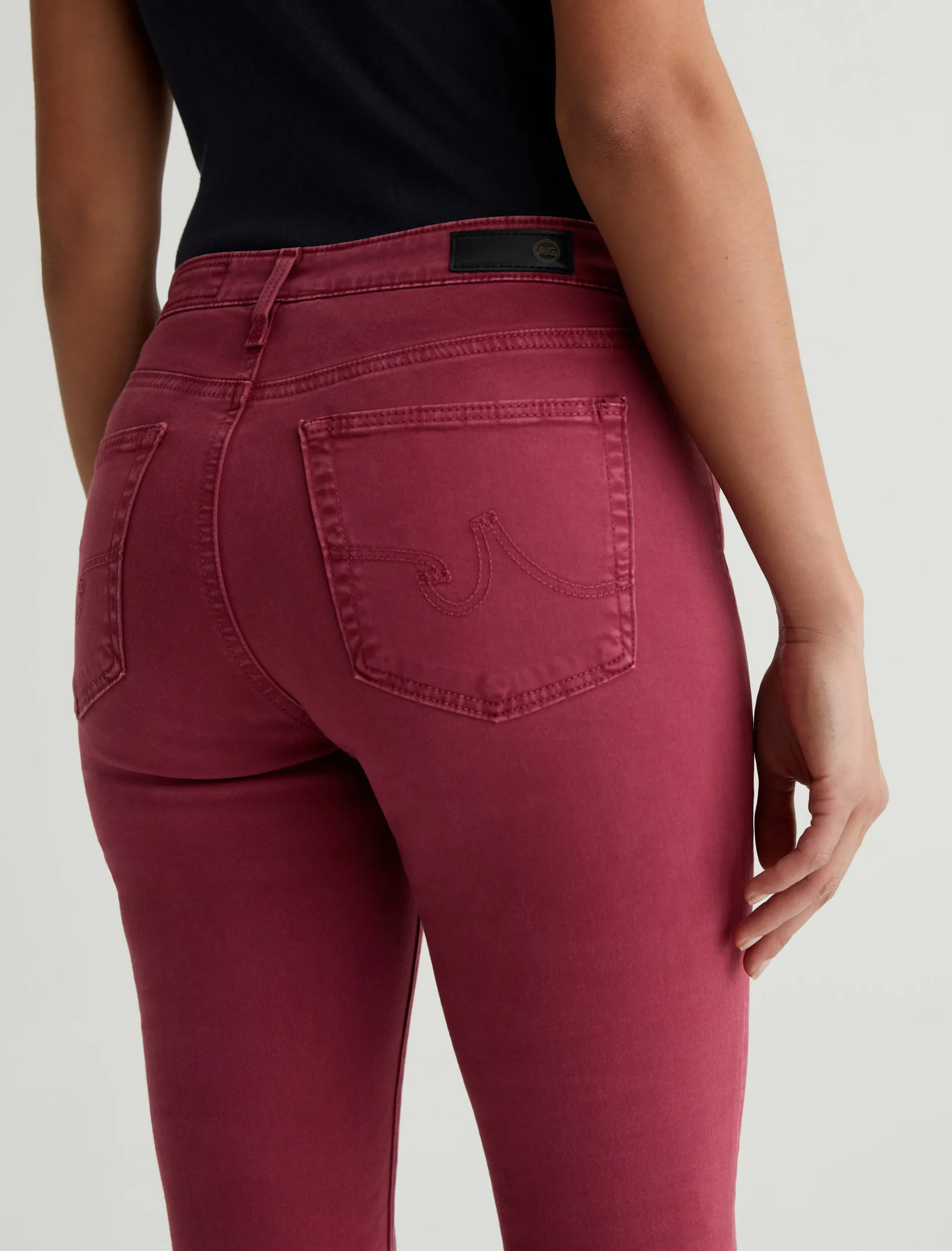 Prima is a mid-rise cigarette pant for women, updated in a rich burgundy color with subtle fading at the seams and edges. Fittedthrough the hips with slight tapering at the legs, this pair comes in 7.8 oz. Luscious Super Stretch Sateen that’s lightweight and comfortable with flexible construction.