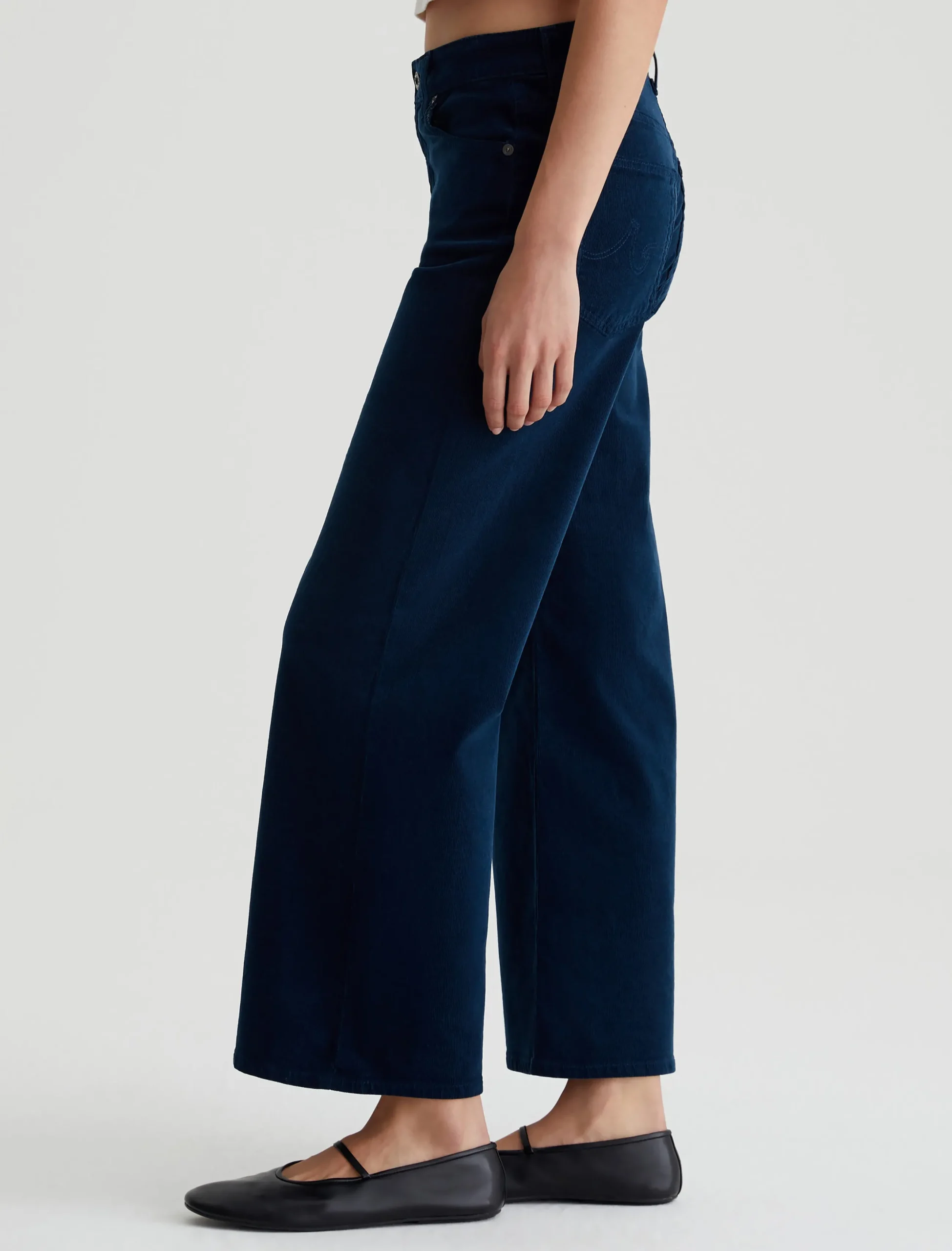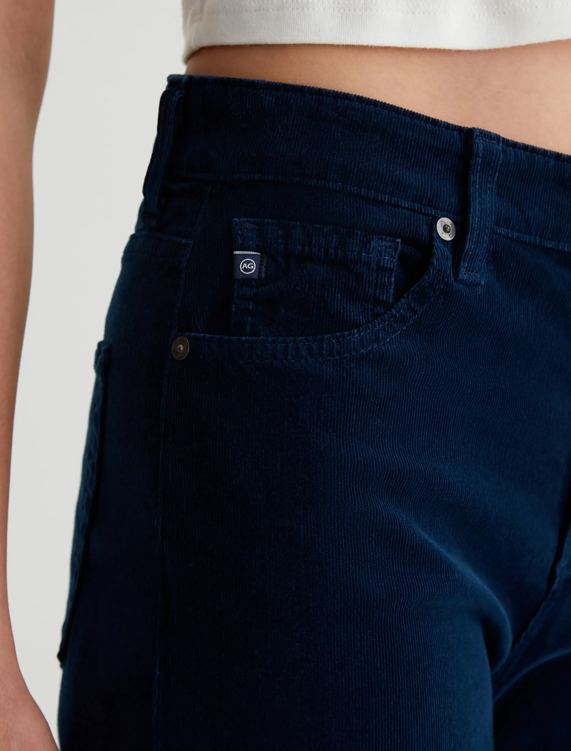 Our Saige Wide Leg Crop features velvety-soft stretch corduroy in a deep, oceanic blue shade. A mid-rise silhouette with loose, cropped legs, this pair can easily be dressed up or down to take your look from daytime to nights out.