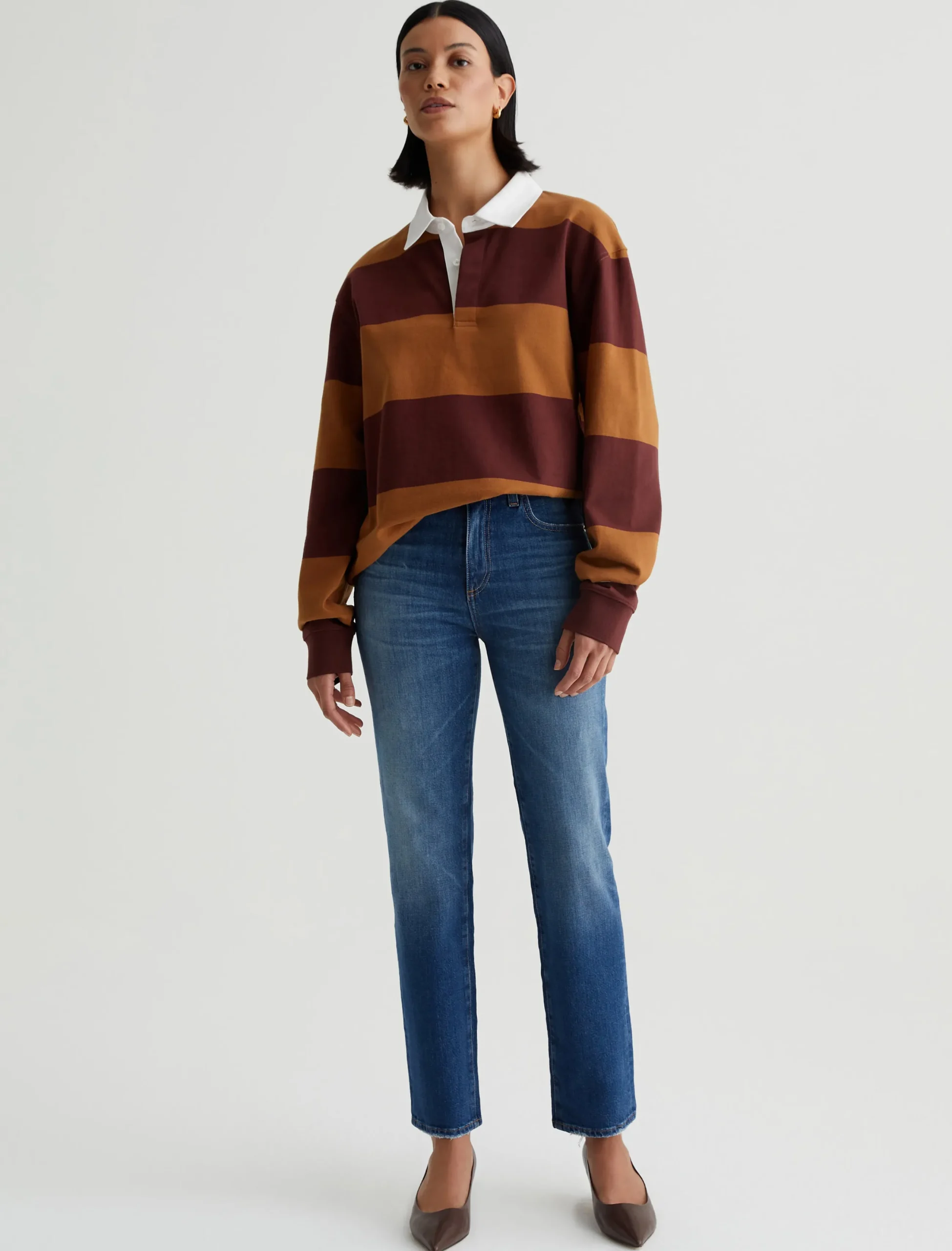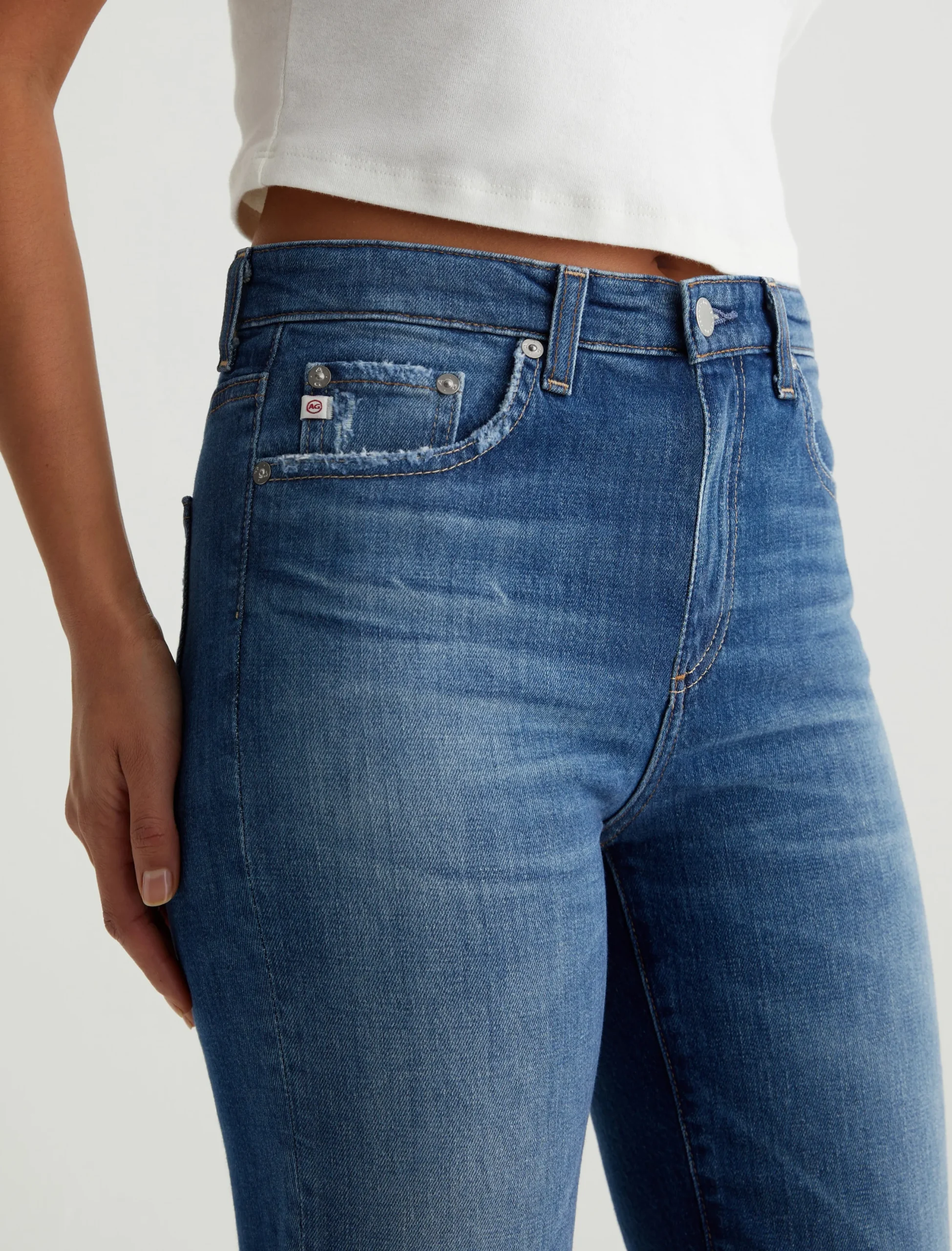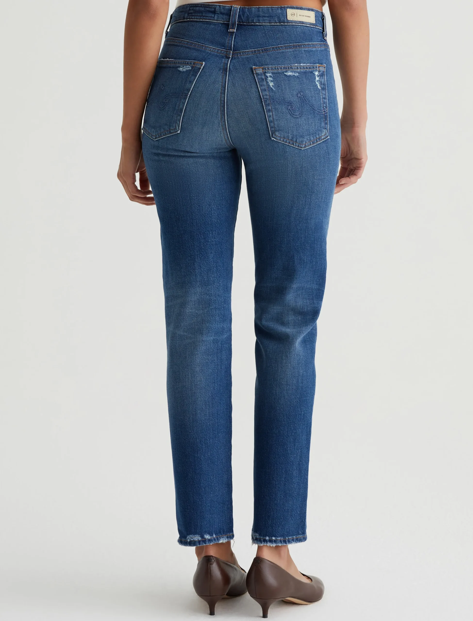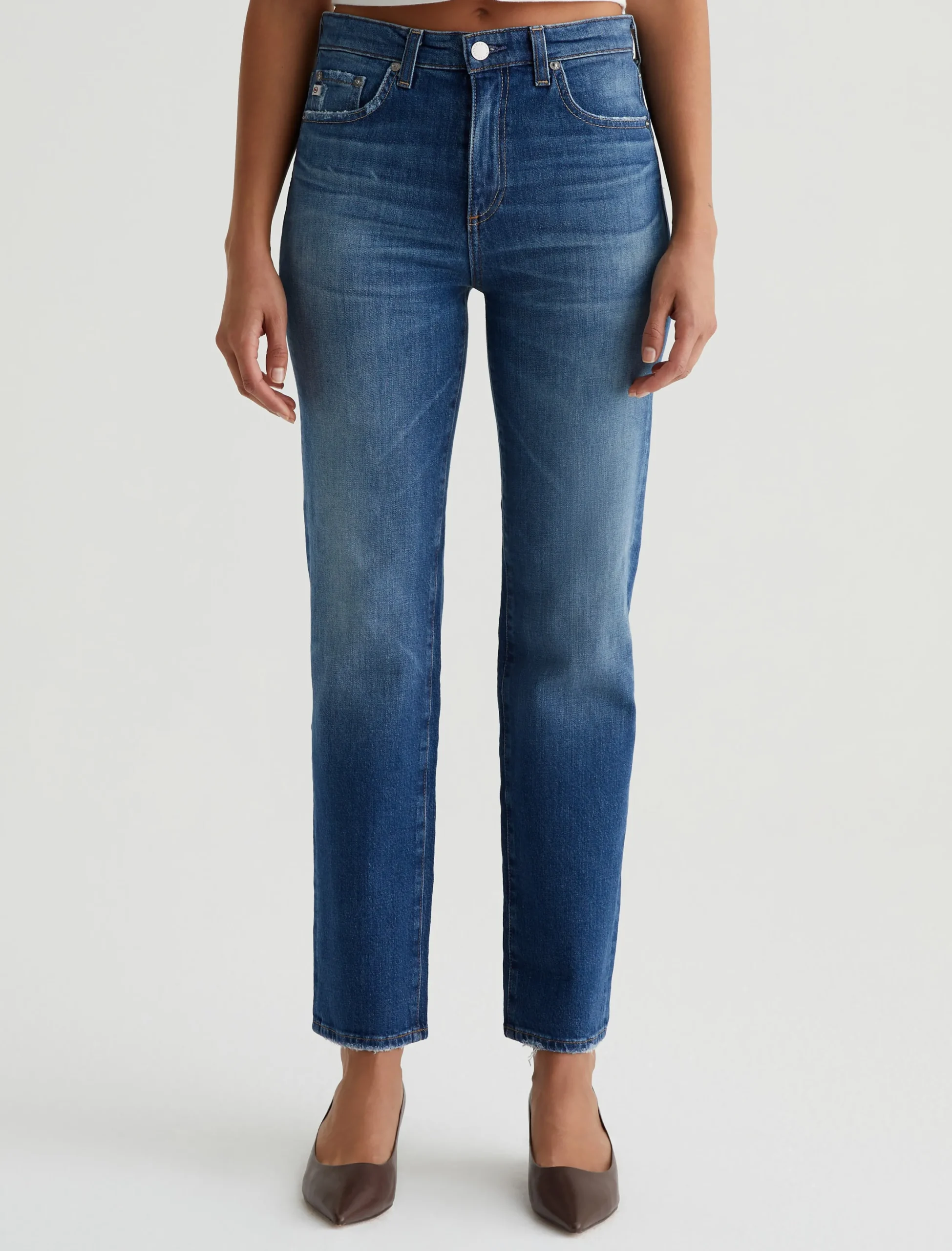 Saige is a women’s mid-rise straight jean, done here in a medium blue wash with a 14-year AG-ed™ Denim finish. Whiskering and touches of distressing at the pockets and hems add a naturally lived-in appearance. Made from 11 oz. Journey Denim, these five-pocket jeans have stretch built in for enhanced comfort.