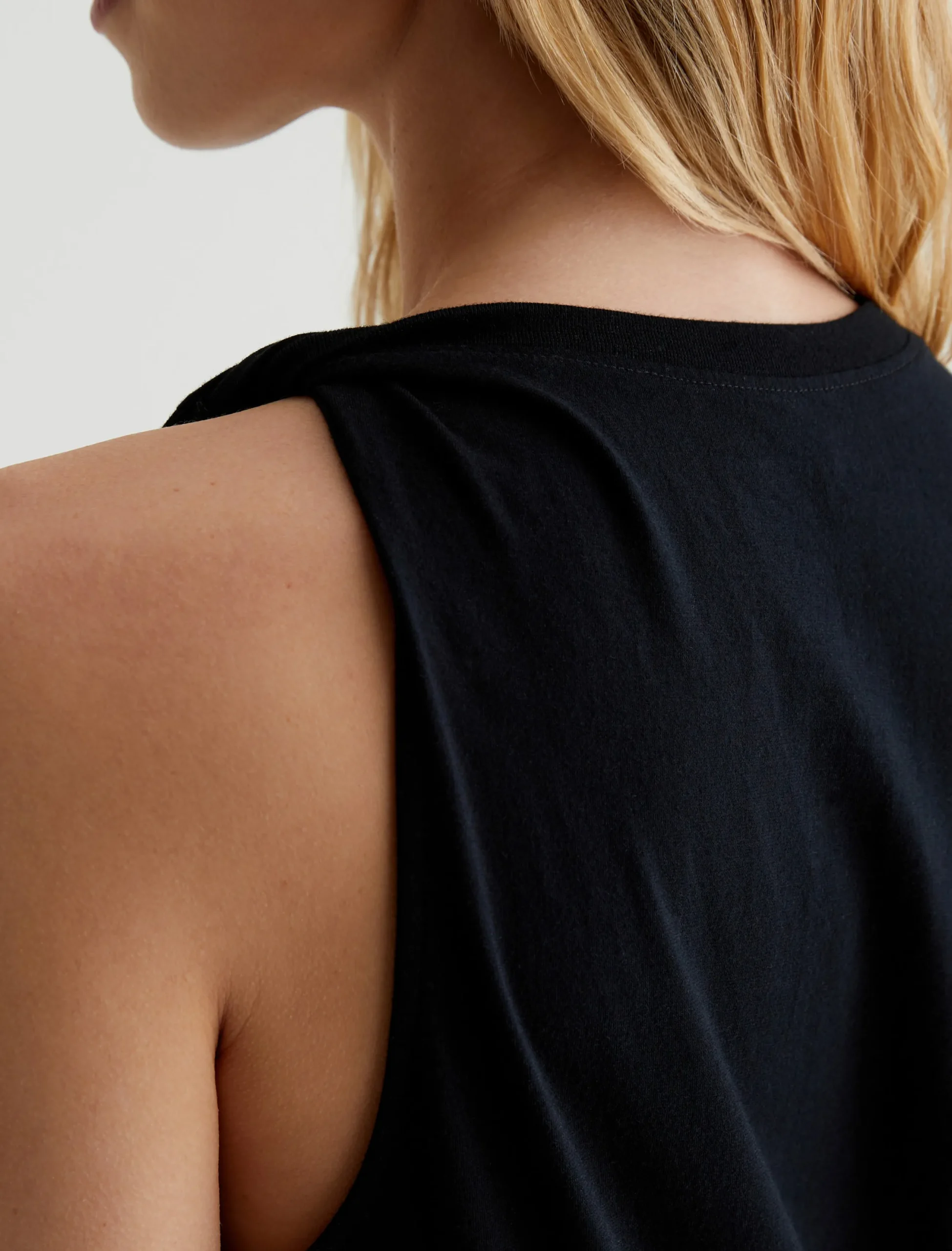 The Sato Tank’s asymmetrical twist detail on the left shoulder lends a novel approach to the classic muscle tee. Done in classic black, it’s made from stretch-blend Luxe Comfort Jersey for a soft, easy feel.