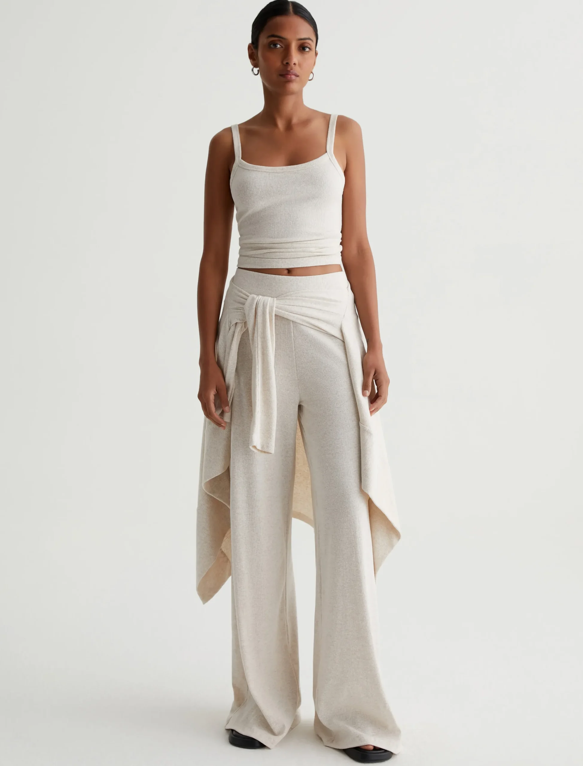 Perfect for lounging, our Sourie wide-leg pants are relaxed and easy to wear in a cozy mélange rib knit. The pair slips on effortlessly and stays comfortable thanks to its elasticized waist. Layer on our matching tank and cardigan for a set that’s got year-round potential.