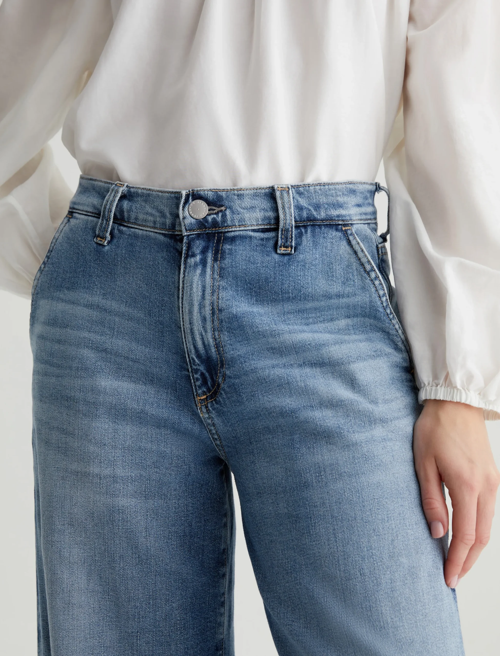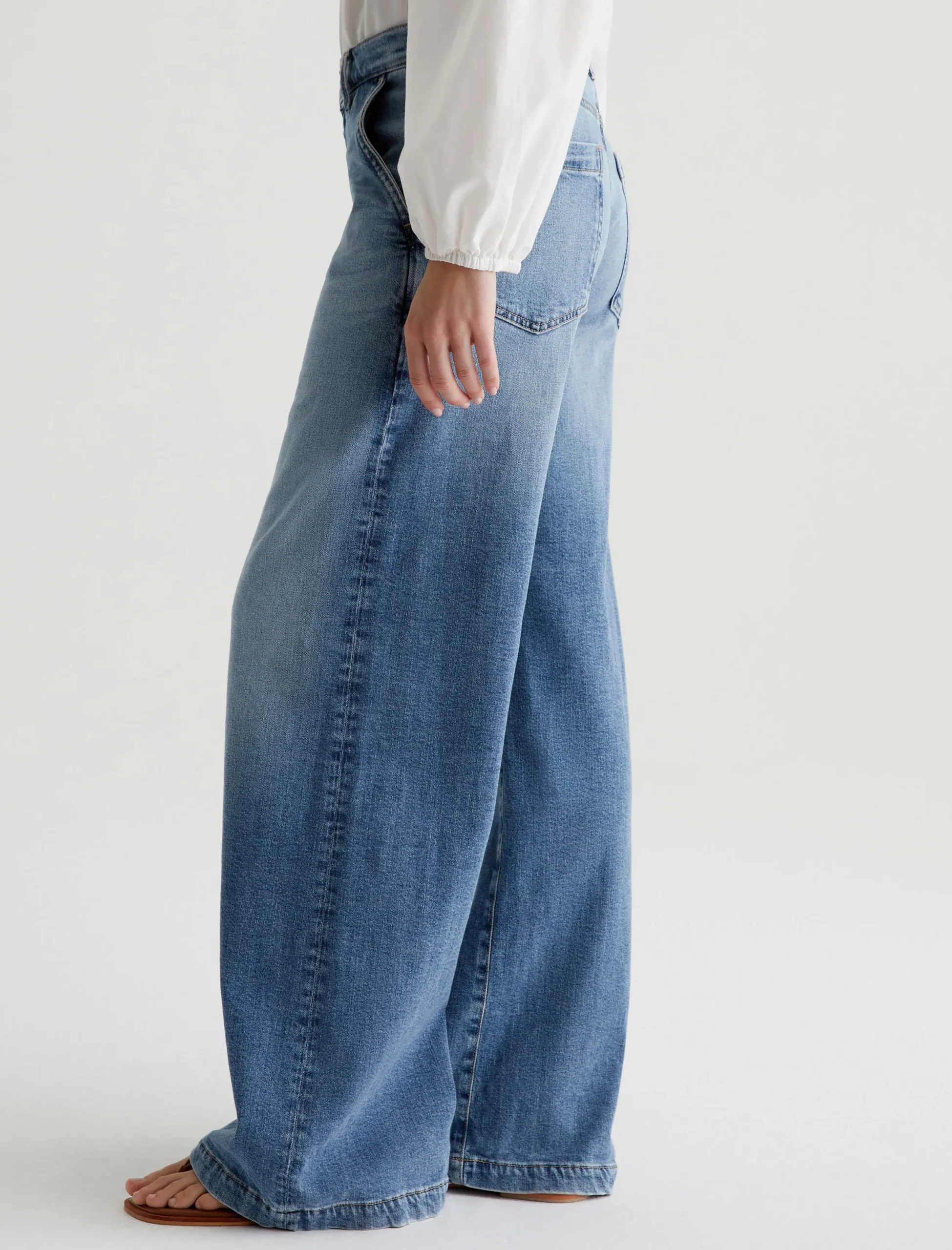 Our Stella palazzo pants are designed to be slung low on the waist and feature a super-wide cut through the legs. Crafted from 10 oz. Daytripper Stretch Denim, these wide-leg pants come in a light indigo wash with fading and whiskering. Slant pockets finish the look.