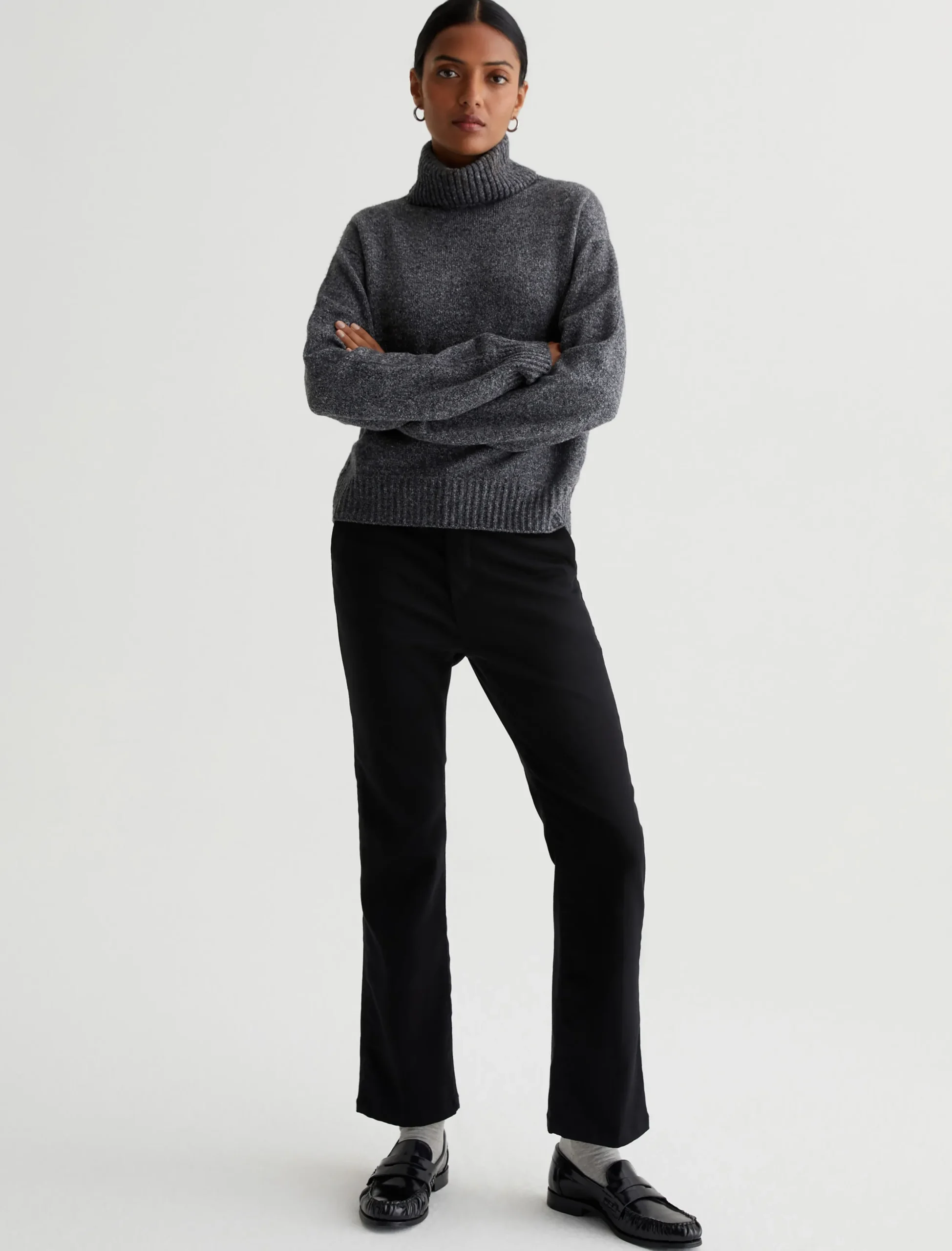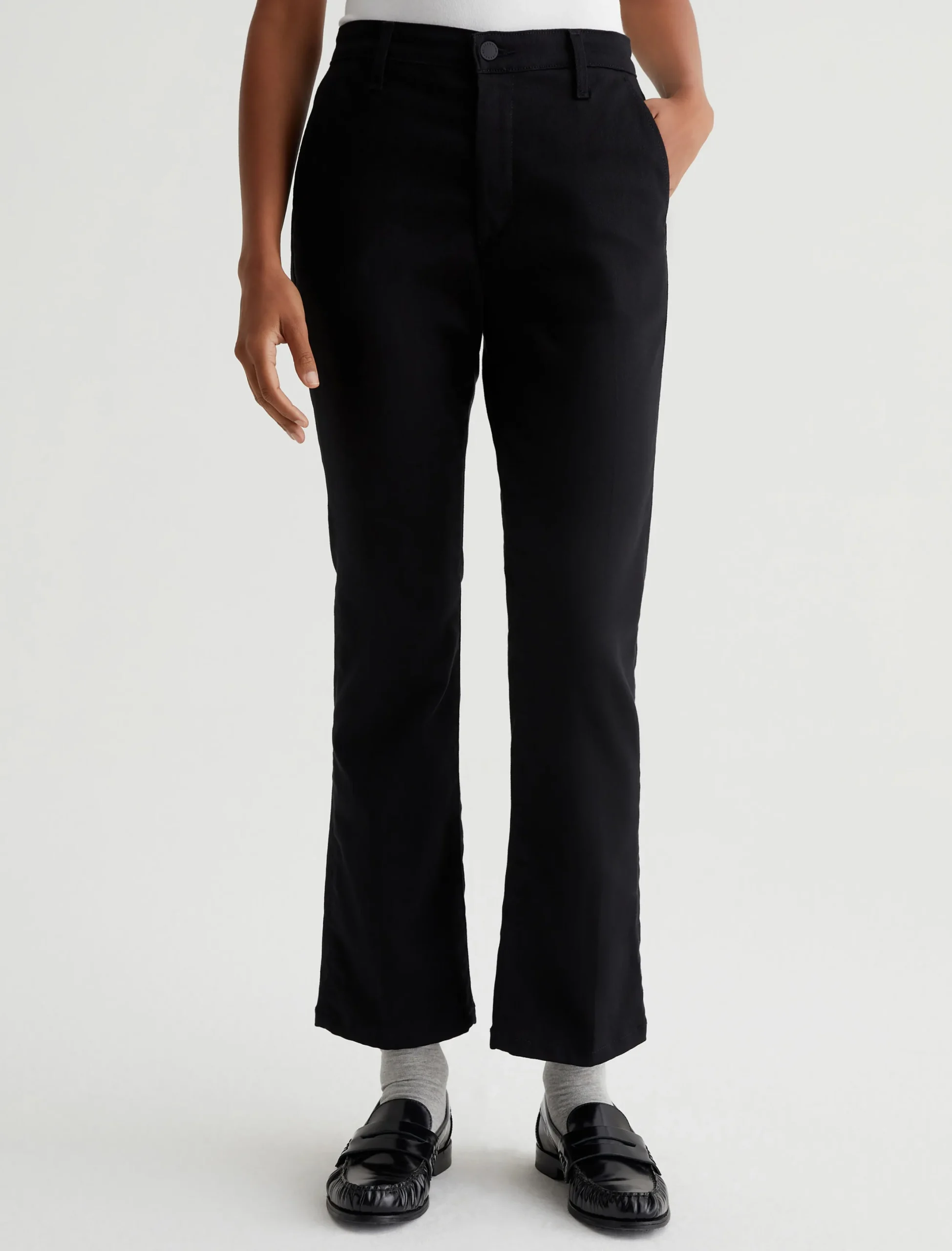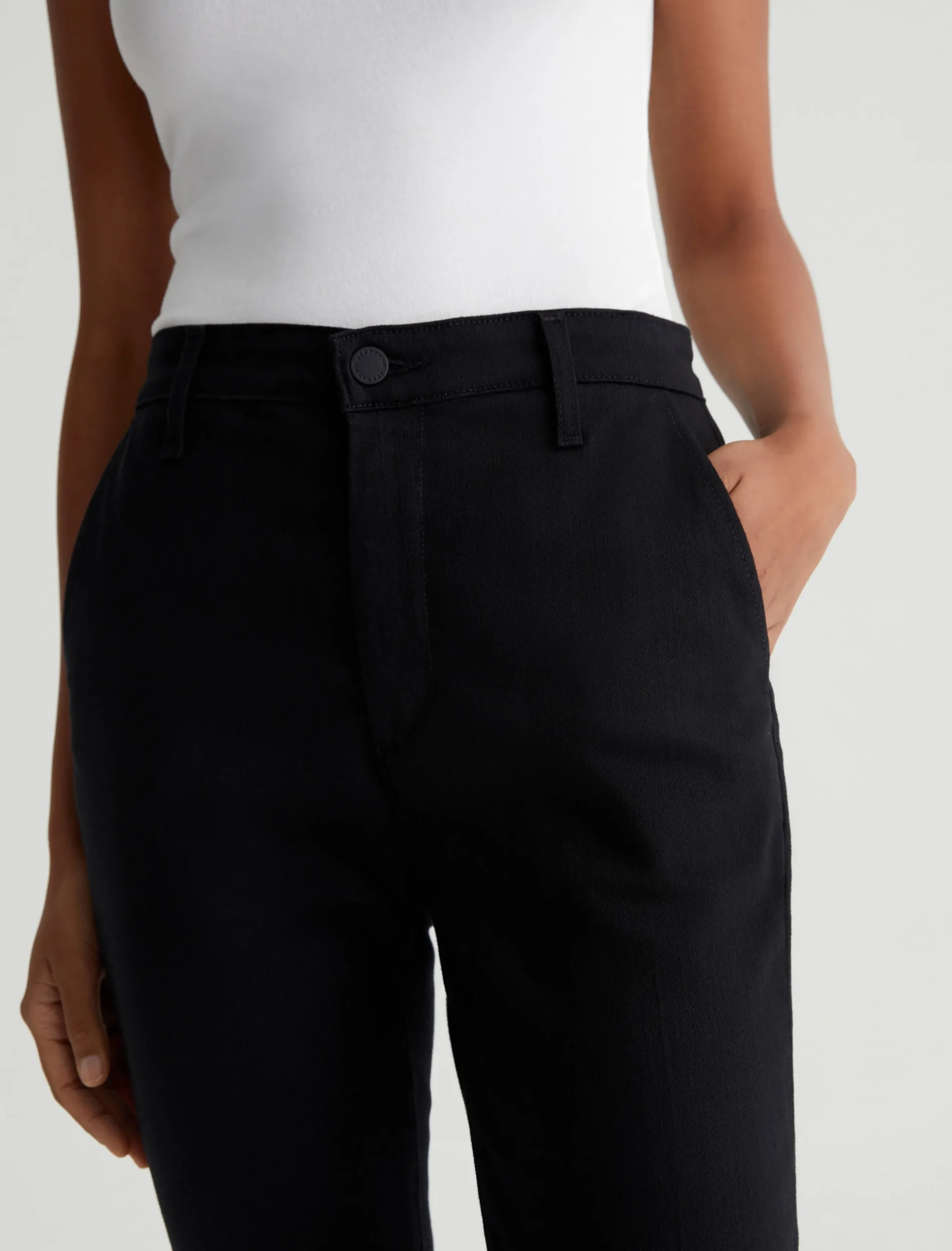 The Tailored Kinsley delivers a polished update to our high-rise cropped bootcut with subtly flared hems. Crafted from 10 oz. Dover Stretch Denim in black, these women’s trousers have a clean, sophisticated look with slash pockets at the front and welt pockets at the back.